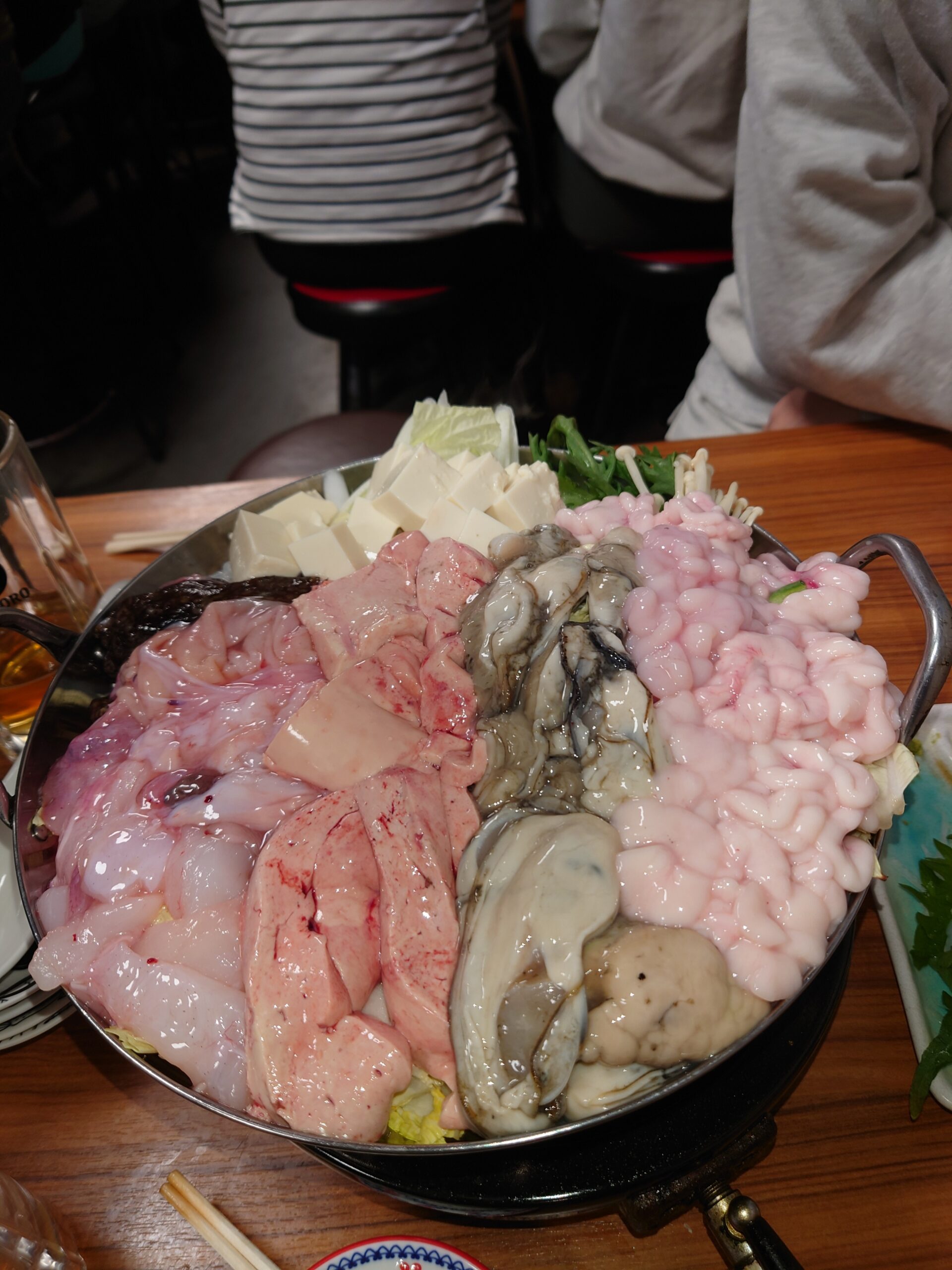 事前情報でお店のメニューを聞いていましたが、かなり評判の鍋があるということで、 ワクワクしながら店の外で予約時間を待ち、満席で賑わうお店に入場。